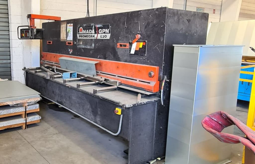 - AMADA GPN 630 Guillotine shearCapacity 3050x6,35mm - Backgauge CNC backgauge travel 1000mm - Dimensions 3700x1990x1960mm - Approx. 12100Kg - Origin : Japan. Please Note that this lot has loading charges of EUR800. This will be added to your invoice. - Location : 59300 V...