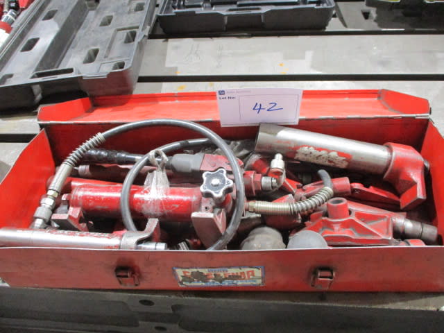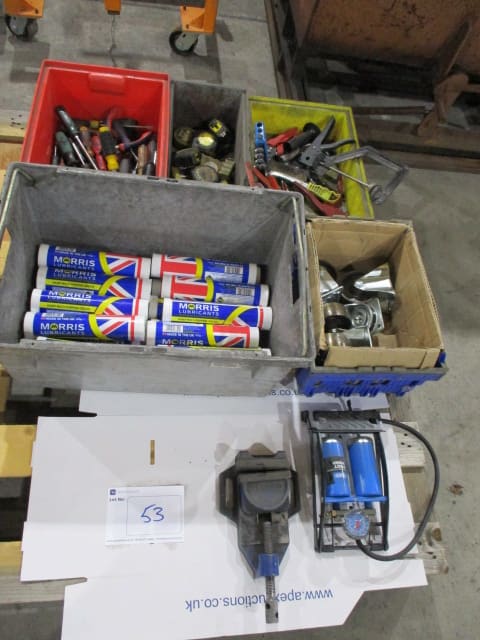 - 1 Lot Assorted ToolsIncluding (1) Record 414 Vice; (4) Swivel Castors (Unused); Assorted Measuring Tapes, Screwdrivers, Unused Morris GP Grease & Foot Pump.