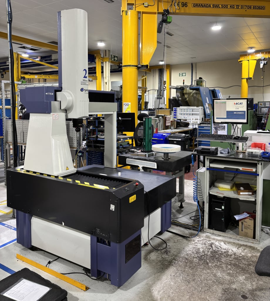 - ViewMitutoyo Crysta- Apex C776 Co-Ordinate Measuring Machine (CMM)Measuring Range 'X'=700mm, 'Y'=700mm, 'Z'=600mm. Resolution 0.0001mm. CNC Mode Maximum Moving Speed 519mm/s, (3D) Maximum Measuring Speed 8mm/s, CNC Mode Maximum Moving Speed 239mm/s, (3D) Maximum Measuring Speed 8mm/s. Workpiece Maximum He...