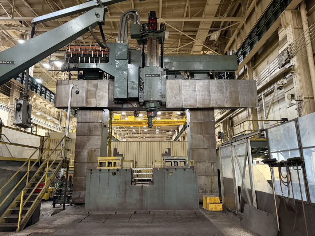 - View1991 Ingersoll Double Column 4.5 Meter Adjustable Rail Machining Center, 8"1991 Ingersoll Double Column 4.5 Meter Adjustable Rail Machining Center, 8", GE Fanuc Series 30i-Model A CNC Controls, 177" Between Columns, (2) 14' x 26', 14' x 14' Slotted Floor Plates, Approx. 11' Vertical Travel, (2) 24" x 165" x 62" St...